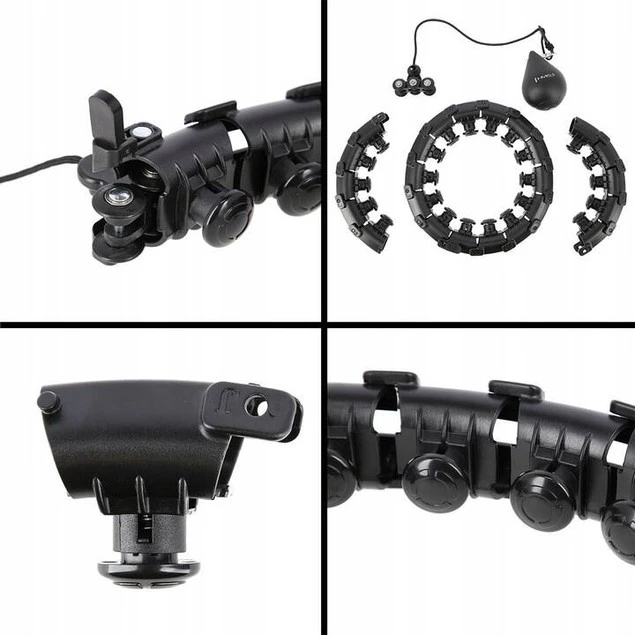 W szybki i wygodny sposób zmniejsz lub zwiększ rozmiar koła, wystarczy wypiąć lub wpiąć tyle elementów ile potrzebujesz. HHW01 posiada łącznie 24 elementy. Rozmiar można ustawić w zakresie od 14 do 24 elementów, czyli obwód w talii od 48cm do 106,5cm (średnica pętli: 26cm do 45cm). Dzięki temu urządzenie nigdy nie spadnie podczas treningu, dlatego nawet początkujący mogą z niego korzystać.