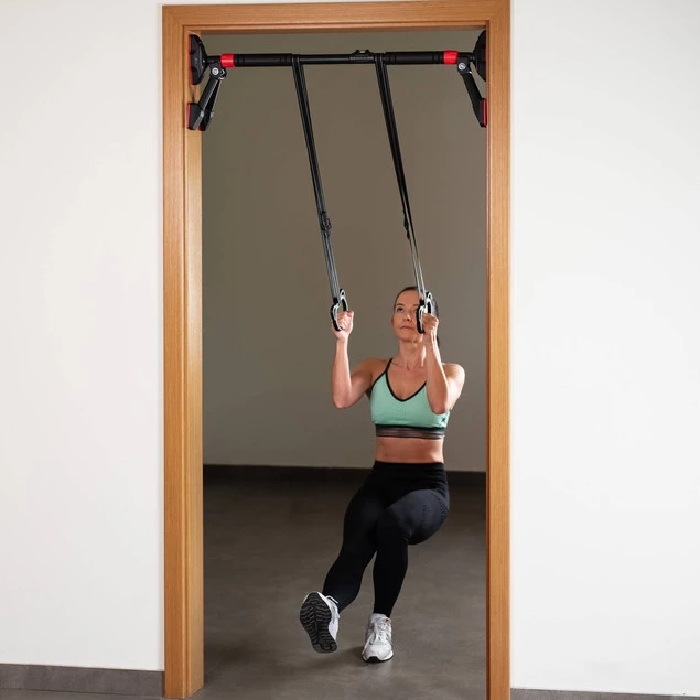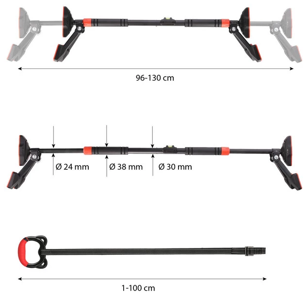 DDG03 jest łatwy w montażu i demontażu, dzięki czemu nie zajmuje dużo miejsca i można go przenosić według własnych potrzeb. Możesz go zamocować między framugami drzwi lub ścianami o szerokości od 96 do 130 cm. Drążek jest wykonany z najwyższej jakości materiałów, został pokryty antypoślizgową powłoką, a podpórki po dwóch stronach zapewnią Ci maksymalne bezpieczeństwo i komfort ćwiczeń. Dzięki poziomicy będziesz mieć pewność, że DDG03 został poprawnie zamontowany.