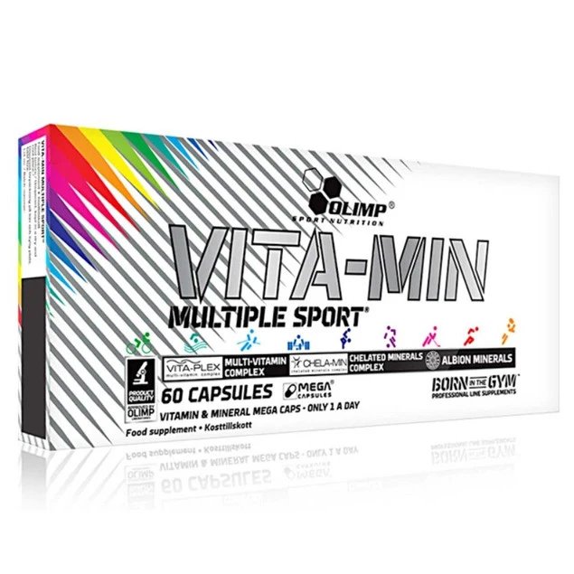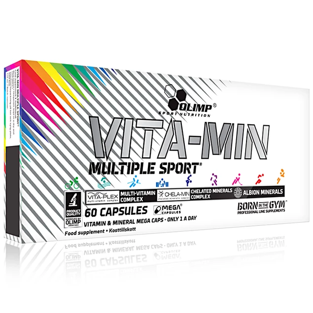 Vita-Min Multiple Sport® Mega Caps®/Mega Capsules® NOWA FORMUŁA to kompleksowa kompozycja witamin (Vita-Plex Sport®) zawierająca m.in. innowacyjną witaminę C nowej generacji PureWay-C® wraz z kompleksem specjalnych ekstraktów (HEPA-PROST DETOX) wpływających na prawidłową czynność wątroby i prostaty. W skład zestawu wchodzi druga kapsułka ( Chela-Min Sport®), z wysoko przyswajalnymi , najwyższej jakości składnikami mineralnymi w formie chelatów aminokwasowych firmy ALBION®. Oba kompleksy Vita-Plex Sport® oraz Chela-min Sport® ułatwiają pokrycie podstawowego zapotrzebowania na niezbędne mikroskładniki pokarmowe organizmu, obarczonego ciężkimi wysiłkami fizycznymi.