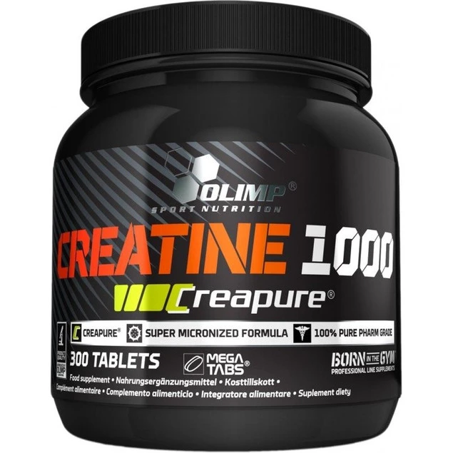 OLIMP KREATYNA 1000 jest preparatem w postaci tabletek, zawierającym kreatynę. Cząsteczka kreatyny jest podstawowym nośnikiem energii w komórkach mięśniowych. Odpowiednie uzupełnienie poziomu kreatyny zwiększa zawartość fosfokreatyny, umożliwiając szybką resyntezę ATP - bezpośredniego źródła energii, co przyczynia się do podniesienia intensywności i wydajności pracy mięśni. Dynamikę działania preparatu poprawia obecność sorbitolu, który dzięki konwersji w organizmie do fruktozy i glukozy potęguje insulinowo zależny domięśniowy transport kreatyny, a jednocześnie nie wykazuje niekorzystnych efektów działania charakterystycznych dla cukrów prostych. Wysoka koncentracja kreatyny w mięśniach stymuluje syntezę białek działając antykatabolicznie i anabolicznie, co wpływa na szybszy przyrost tzw. beztłuszczowej masy mięśni oraz ich sprawność.