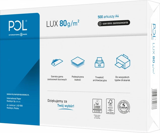 Papier ksero A4 80g 500 arkuszy POLLUX biały do drukarki i kopiarki