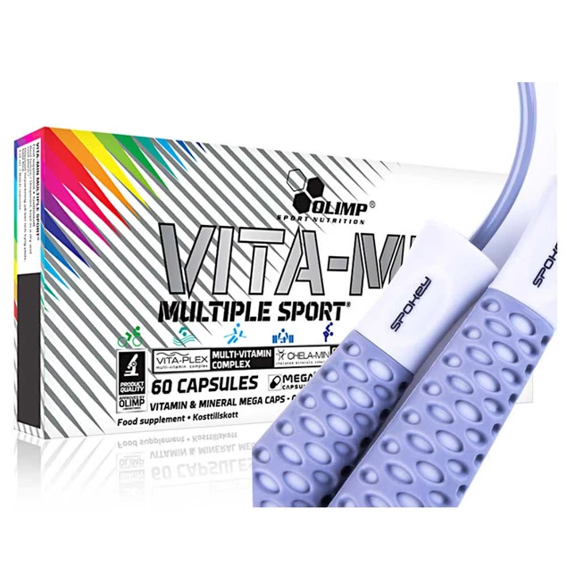 Vita-Min Multiple Sport® Mega Caps®/Mega Capsules® NOWA FORMUŁA to kompleksowa kompozycja witamin (Vita-Plex Sport®) zawierająca m.in. innowacyjną witaminę C nowej generacji PureWay-C® wraz z kompleksem specjalnych ekstraktów (HEPA-PROST DETOX) wpływających na prawidłową czynność wątroby i prostaty. W skład zestawu wchodzi druga kapsułka ( Chela-Min Sport®), z wysoko przyswajalnymi , najwyższej jakości składnikami mineralnymi w formie chelatów aminokwasowych firmy ALBION®. Oba kompleksy Vita-Plex Sport® oraz Chela-min Sport® ułatwiają pokrycie podstawowego zapotrzebowania na niezbędne mikroskładniki pokarmowe organizmu, obarczonego ciężkimi wysiłkami fizycznymi.