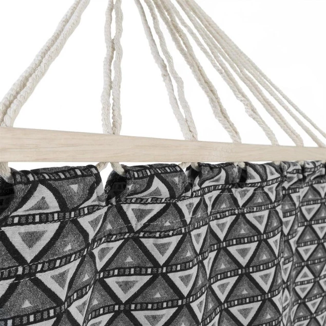 TECHNOLOGIA Hamak jest wykonany z naturalnych materiałów – naturalna bawełna jest miękka w dotyku i zapewnia przepuszczalność powietrza, drewniana belka zapewnia stabilność. Maksymalne obciążenie hamaka to 120 kg.